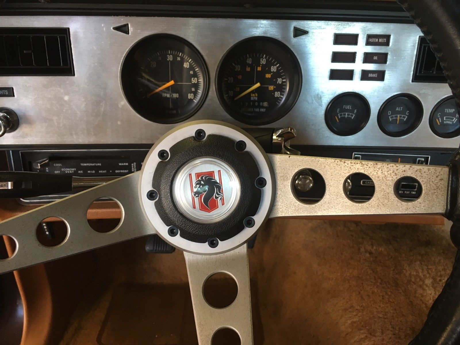 Of course, styling fashions also change, and the vinyl seats and shag carpet (mixed with brown and orange highlights) may not wow today compared to the ’70s. The Mustang II horse-head logo on the steering wheel just looks laughably like a seahorse trying to beat Farrah Fawcett at her own blow-dried-hair game.