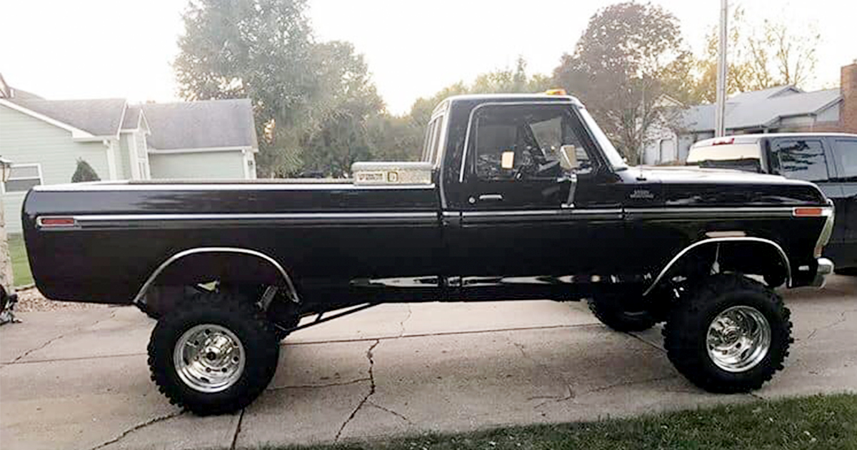 It’s a 79 f250 with 4 inches of lift with Dana 60’s front and rear 4 speed 33x14.5x16.5 boggers with a 16.5x12 weld super single wheel with some HP. I got it when I turned 14!